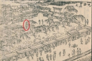 この柳森通りは神田川の土手に柳の木を植えたことからはじまっていると思っていましたので、神社は当然その後に置かれたことになります。しかし社伝によれば 「室町時代に、太田道灌が江戸城東北方面の鬼門除けとして京都の伏見稲荷大社を勧請して創建した」ということになっています。すぐ先で隅田川に合流する神田川は江戸幕府の初期に駿河台の丘を開削してここに流れるようになったわけですので、どうも柳の森が先にあり、後になってから神田川堀割の際に現在地に移り、柳の木も堀の土手に移植されたということのようです。さらに時代がたち、徳川綱吉の生母・桂昌院が江戸城内に建立したといわれている福寿神祠が境内に置かれ、烏森神社と共に江戸三森の一社と呼ばれたとなっています。場所柄からしても日本橋に近く、船で浅草方面に簡単にいけますから、当時かなりの賑わいだったことが偲ばれます。神社のホームページに掲載された江戸名所図絵(下の絵)を見ると確かに柳の植えられた土手から川岸におりた場所に稲荷が鎮座しています。